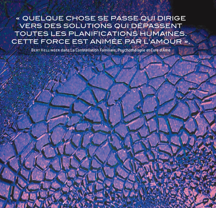 Mon but dans cet article est de montrer comment la méthode développée par Bert Hellinger met en action le transpersonnel. Je m’appuie sur ma pratique de thérapeute et en particulier d’animatrice de constellations familiales depuis plus de dix ans et sur une définition très large du transpersonnel comme ce qui dépasse l’individu, nous relie les uns aux autres et nous relie à des ressources qui nous transcendent.